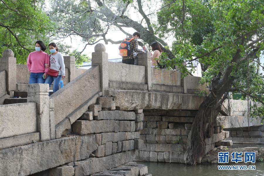 2月21日,市民從福州萬壽橋上走過。新華社記者 林善傳 攝