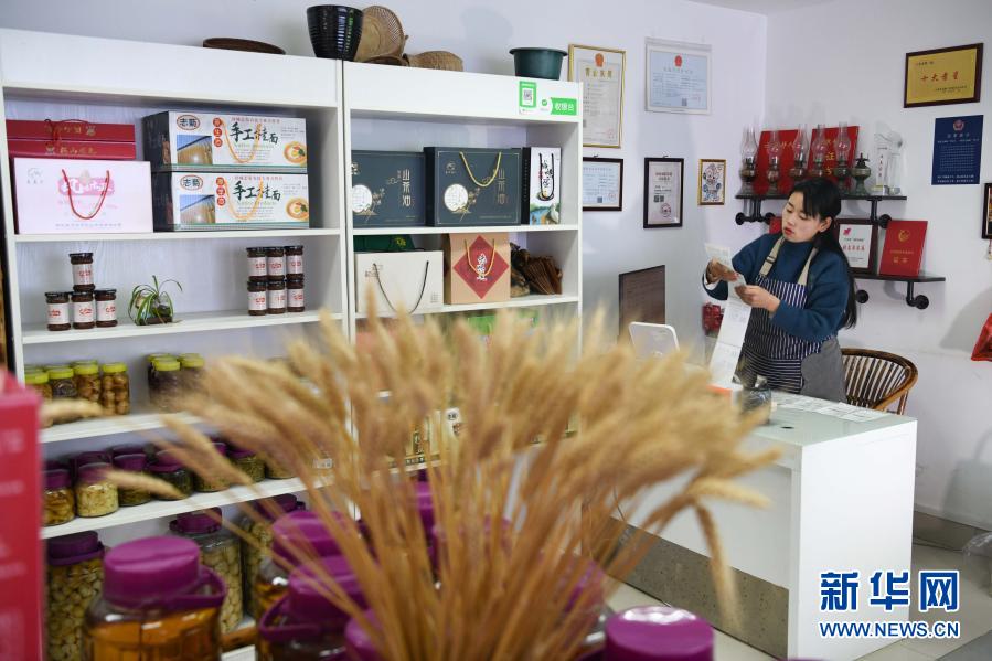 張志菊在自己的土特產店里打印快遞單(2月27日攝)。
