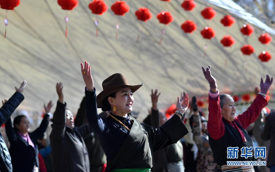 3月8日,人們在拉薩龍王潭公園跳舞。新華社記者 覺果 攝