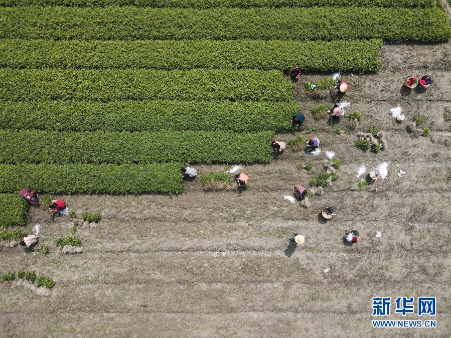 3月13日,在遵義市余慶縣白泥鎮滿溪村,村民在田間勞作(無人機照片)。新華社發(穆明飛 攝)