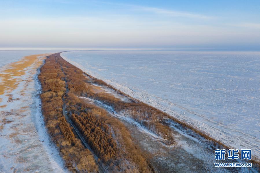 3月13日拍攝的封凍的興凱湖(無人機照片)。