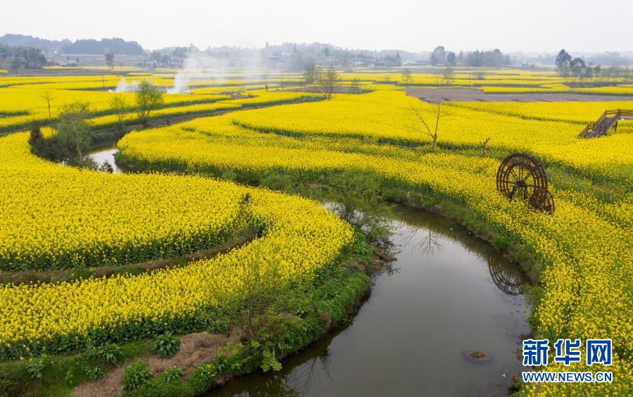 安州區樂興鎮蓮花村的油菜花海(3月14日攝,無人機照片)。新華社記者 江宏景 攝
