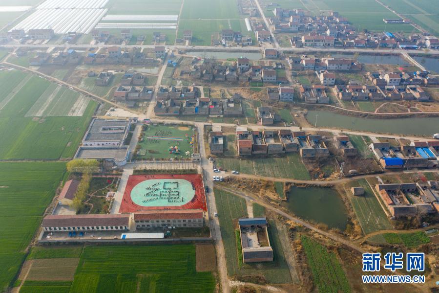 這是騎路小學所在的江蘇省徐州市睢寧縣慶安鎮(zhèn)騎路劉村(3月10日攝,無人機照片)。新華社記者 李博 攝