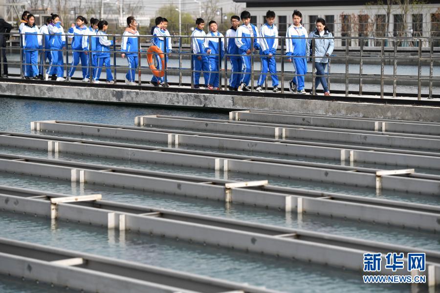 3月21日,水廠工作人員向學生介紹自來水生產流程。