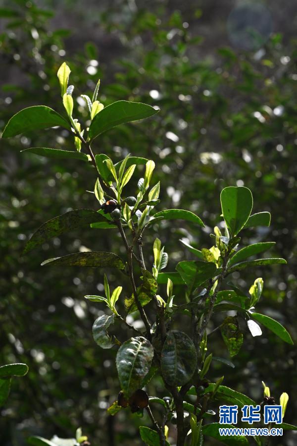 武夷山鬼洞巖茶基地生態(tài)茶園茶樹冒出新芽(3月23日攝)。