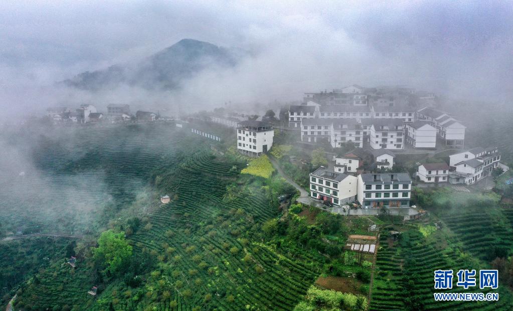 云霧中的流水鎮(zhèn)萬(wàn)畝茶園(3月26日攝,無人機(jī)照片)。