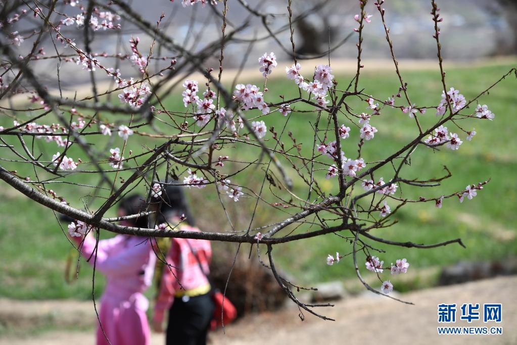 3月28日,游人在西藏林芝市索松村觀賞桃花。新華社記者 孫瑞博 攝