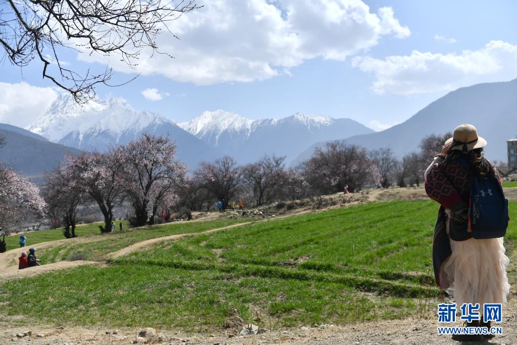 3月28日,游客們來(lái)到西藏自治區(qū)林芝市索松村欣賞桃花。新華社記者 孫瑞博 攝