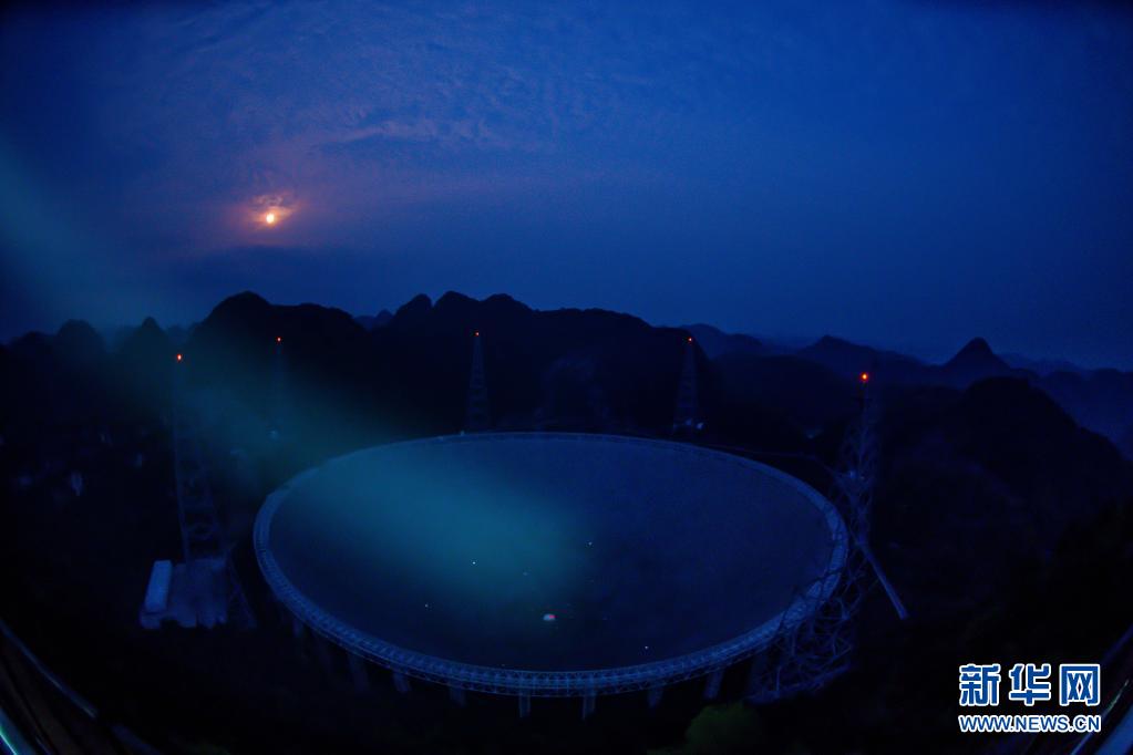 在貴州省平塘縣,被譽為“中國天眼”的500米口徑球面射電望遠鏡(FAST)在群山中仰望星空,探求著宇宙奧秘。