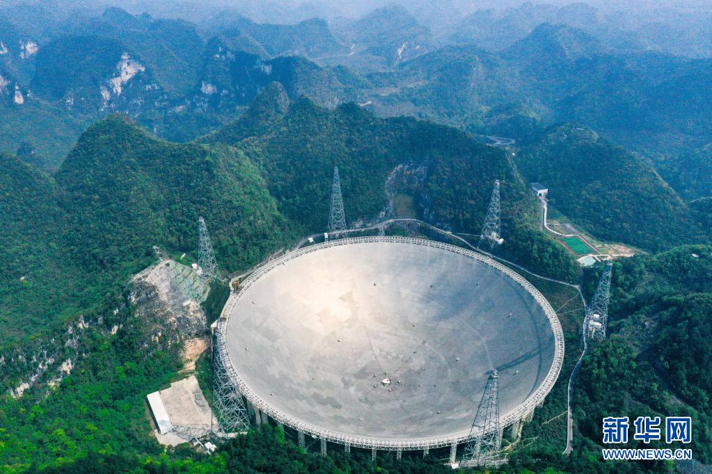 在貴州省平塘縣,被譽(yù)為“中國(guó)天眼”的500米口徑球面射電望遠(yuǎn)鏡(FAST)在群山中仰望星空,探求著宇宙奧秘。