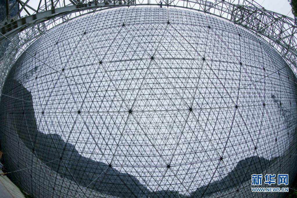 3月28日,從“中國天眼”內部拍攝的反射面板(維護保養期間魚眼鏡頭拍攝)。