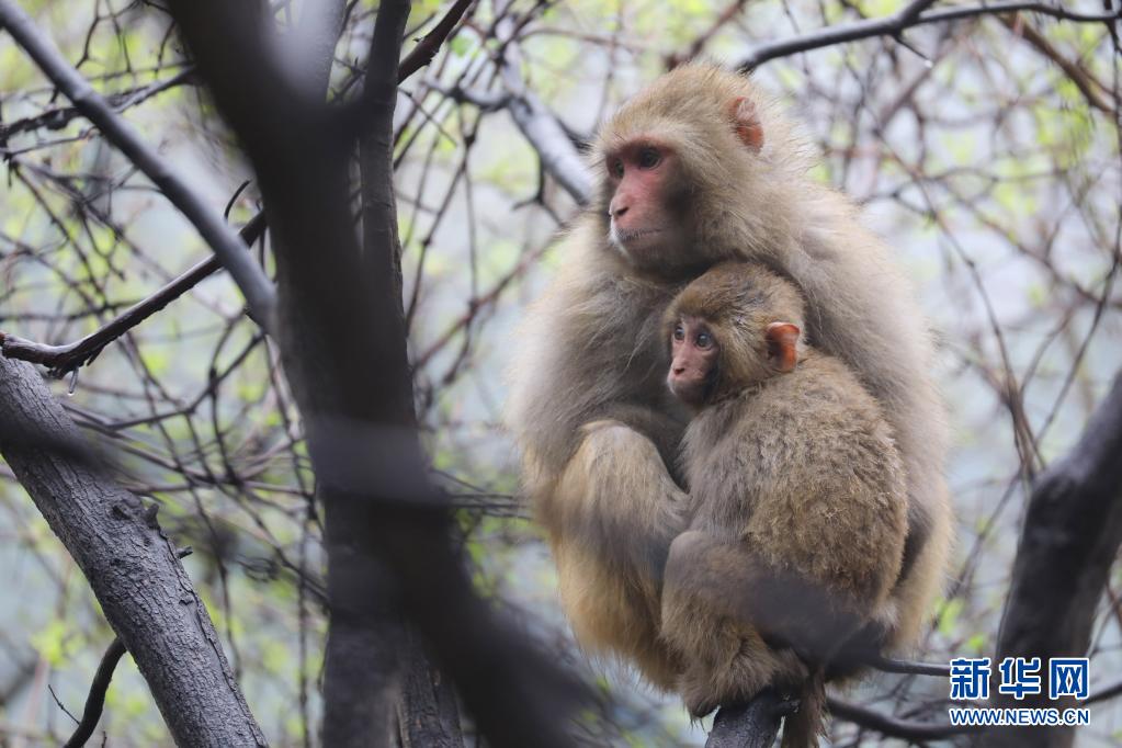 4月3日,在神農(nóng)山風(fēng)景區(qū),兩只太行獼猴偎依著。隨著氣溫回暖,河南省沁陽市神農(nóng)山風(fēng)景區(qū)野生太行獼猴活躍起來,在山林間嬉戲玩鬧,為景區(qū)增添生機(jī)和靈氣。新華社發(fā)(徐宏星 攝)