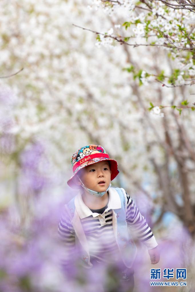 4月7日,小朋友在山西省太原市玉泉山城郊森林公園賞花。近日,山西省太原市玉泉山城郊森林公園栽植的近25萬株各類櫻花競相盛開,吸引不少市民前來觀賞。新華社記者 楊晨光攝