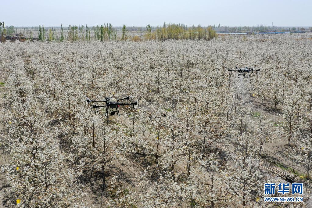 新華全媒+丨新疆:梨農授粉用上無人機