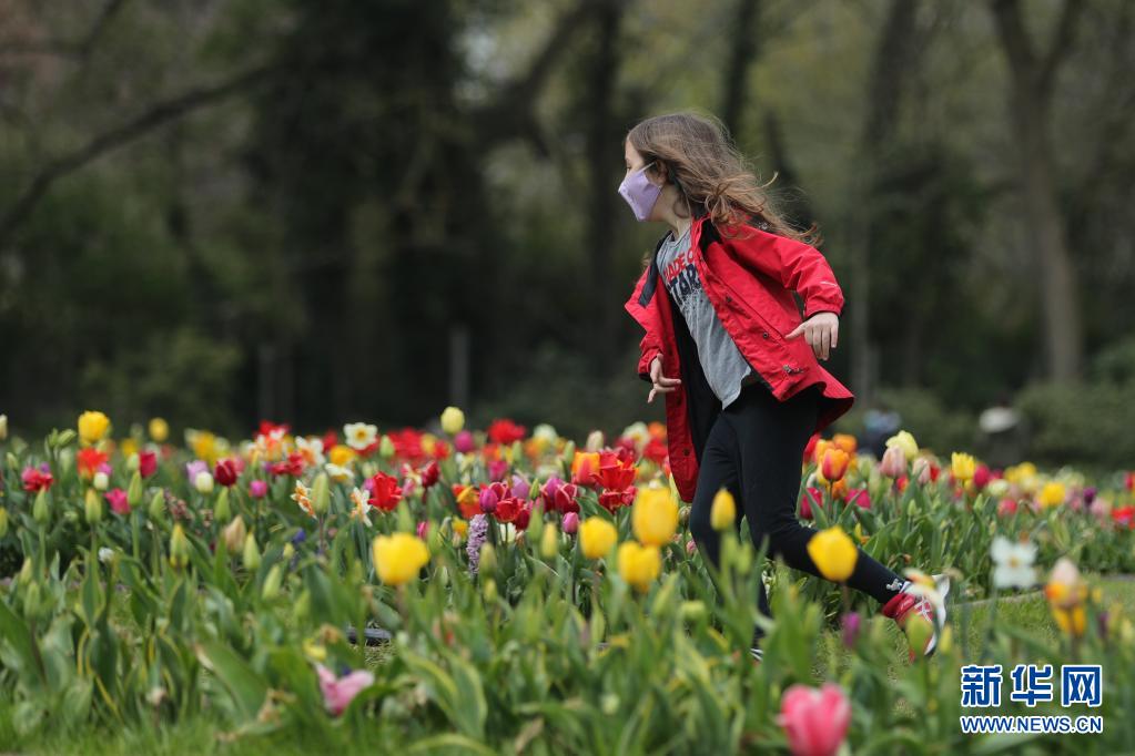 4月14日,一名小女孩在比利時(shí)布魯塞爾以西的拜加登城堡的花叢中奔跑。