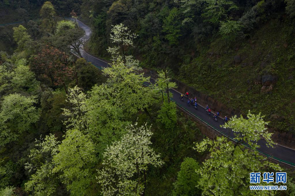 4月18日,騎行愛好者在龍蒼溝國家森林公園里騎行。新華社記者 江宏景 攝