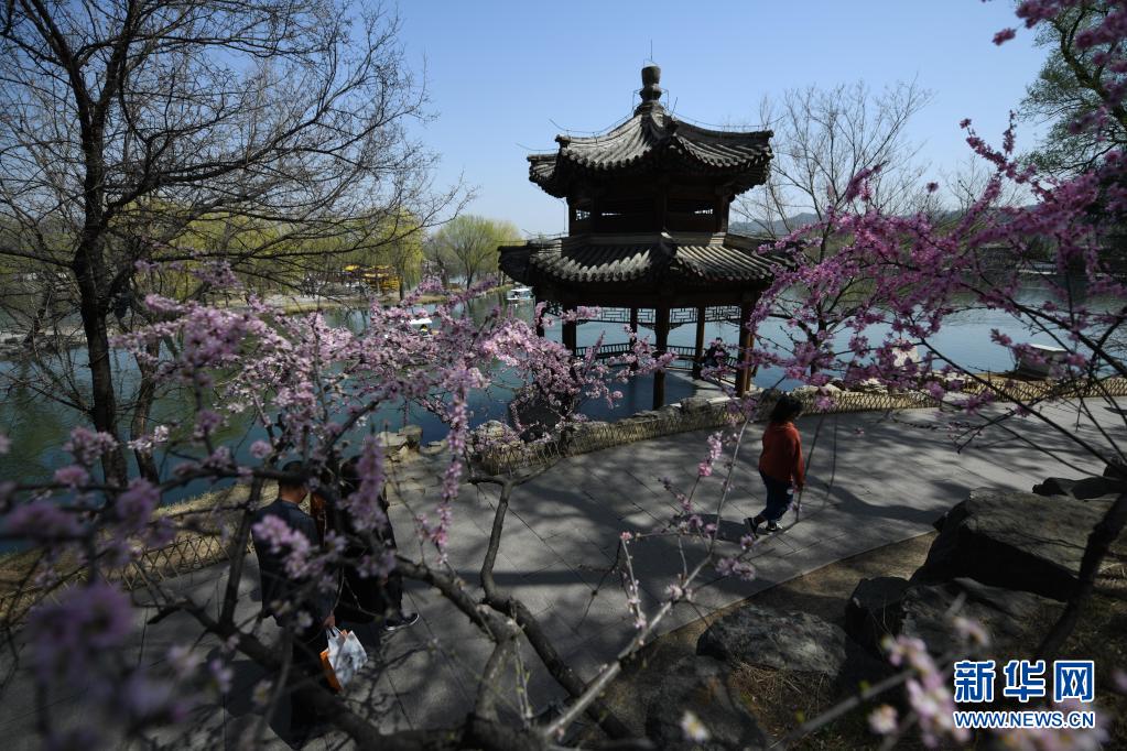 近期,河北承德避暑山莊景區內花紅柳綠,春光旖旎,盛開的春花與古典建筑相映成趣,吸引游客前來踏青游玩。