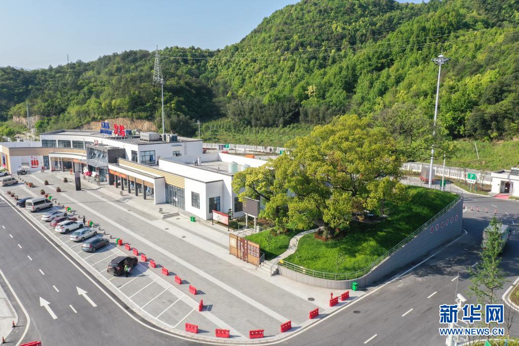 杭州第二繞城高速西復線次塢服務區(qū)有3棵樹齡在100年以上的古樹。服務區(qū)在建設過程中,將古樹保護起來,現(xiàn)已成為一道特色景觀。新華社發(fā)(郭斌 攝)