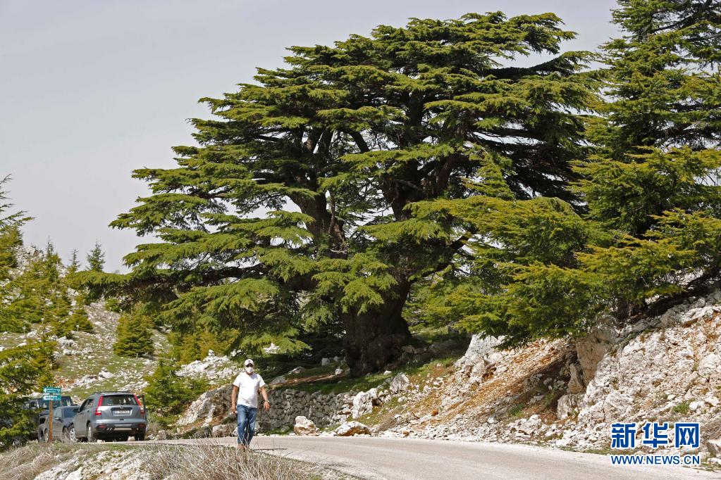 4月18日,游人在黎巴嫩巴魯克雪松保護區內行走。