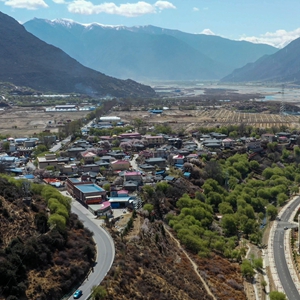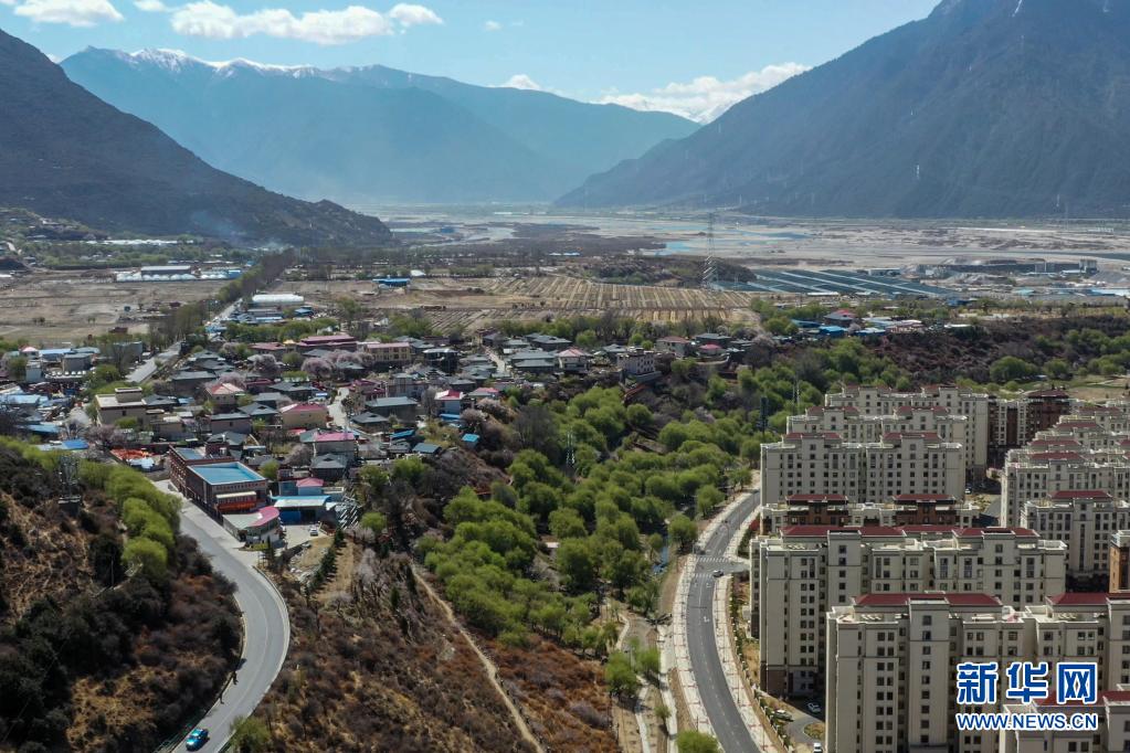 這是西藏林芝市巴宜區(qū)巴吉村(畫面左側(cè))及毗鄰的八一鎮(zhèn)(4月6日攝,無人機照片)。新華社記者 洛卓嘉措 攝