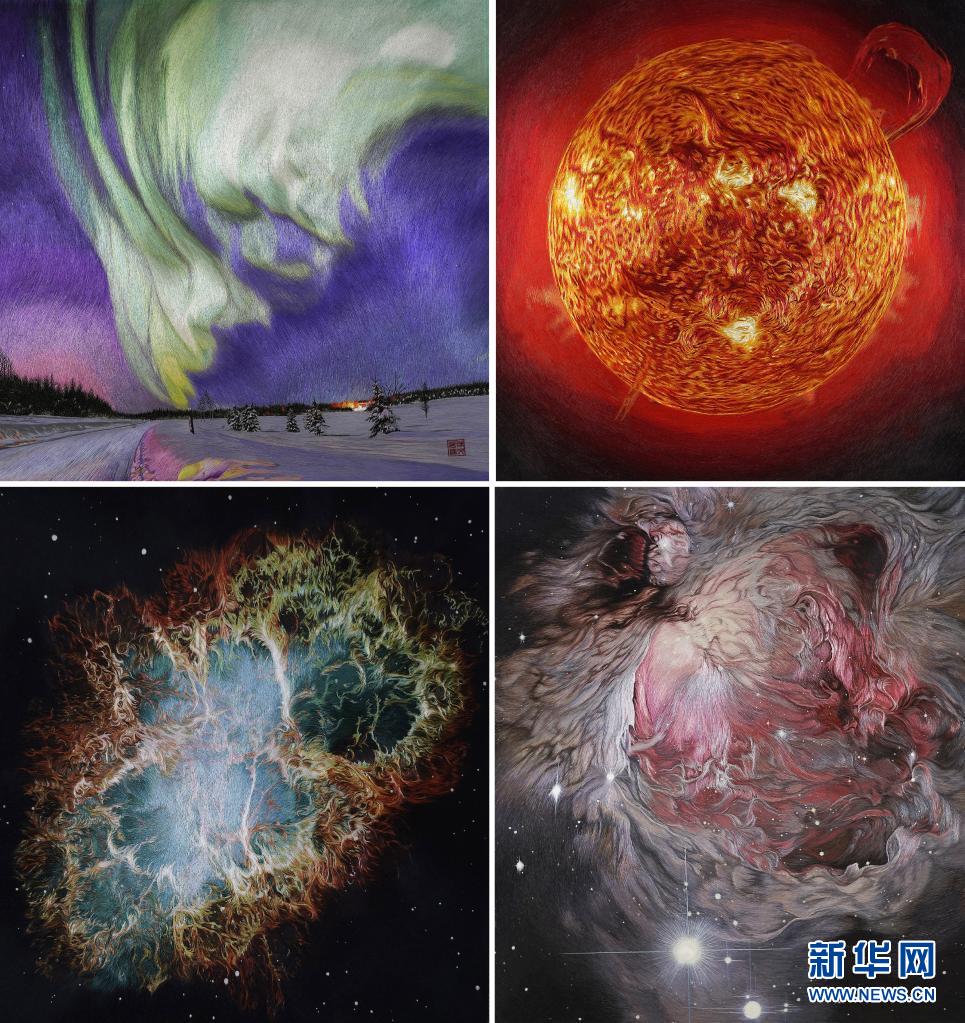 這是陳英華“星空系列”的部分蘇繡作品(拼版照片)。新華社發