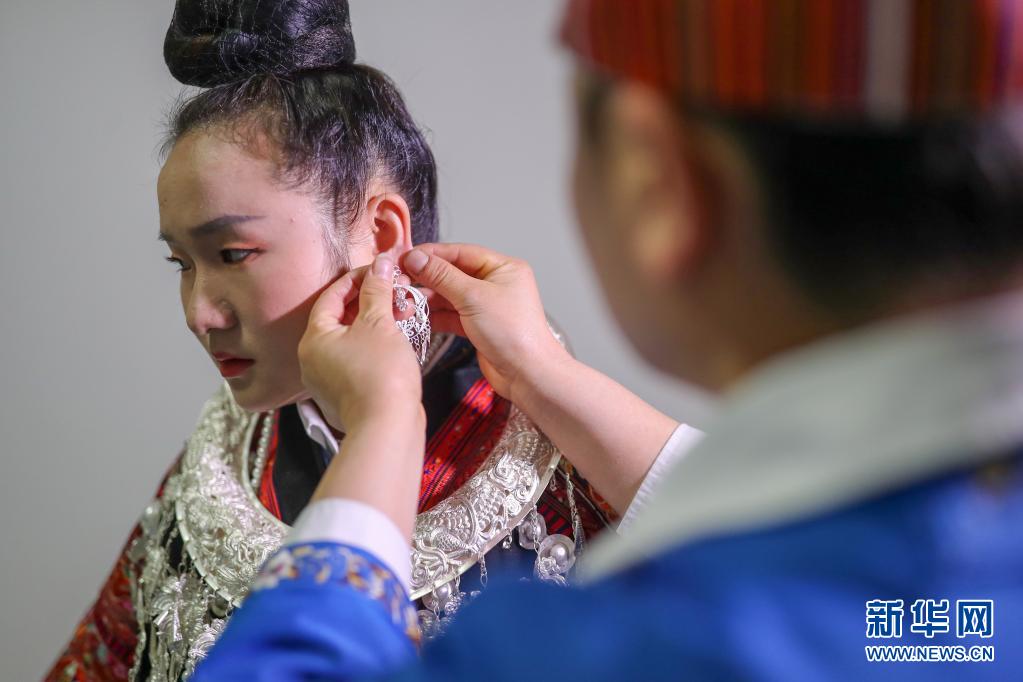 今年姊妹節(jié)前夕,母親張?jiān)雅畠菏⒀b的銀飾拿到銀飾店里進(jìn)行清洗,希望女兒能在盛裝巡演上展示最美的一面。4月25日姊妹節(jié)當(dāng)天,張佳麗早早起床,在母親和同學(xué)的幫助下,開(kāi)始化妝、穿衣、佩戴銀飾,一直忙到9點(diǎn)才準(zhǔn)備完畢。身著盛裝站在巡演隊(duì)伍中,張佳麗說(shuō):“這是我們苗族同胞最大的節(jié)日,無(wú)論身處何地,我都會(huì)如約回家參加活動(dòng)!”