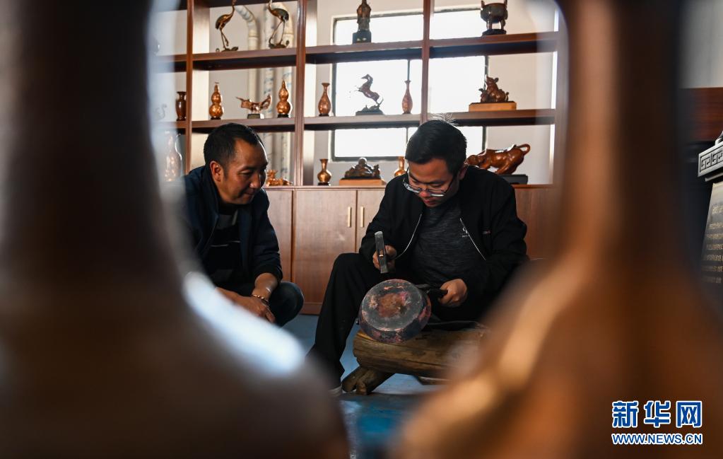 地處滇東北、烏蒙山腹地的云南會澤縣流傳著具有300多年歷史的斑銅制作工藝。斑銅工藝復雜,要采用高品位的銅為原料,經過20余道工序制作而成。產品“妙在有斑,貴在渾厚”,風格獨樹一幟。33歲的張偉是會澤“張氏斑銅”的第十三代傳人。自幼深受地域文化和家庭熏陶的他,大學畢業后,返鄉從事斑銅制作工作。在會澤古城的“銅匠街”,張偉創辦了斑銅傳習館,不斷研發斑銅新產品、傳承著這項非遺技藝。“斑銅是一種情感、一種文化,希望在我們這代人的努力下能夠更好地將它傳承下去,讓更多人了解斑銅的獨特魅力。”張偉說。