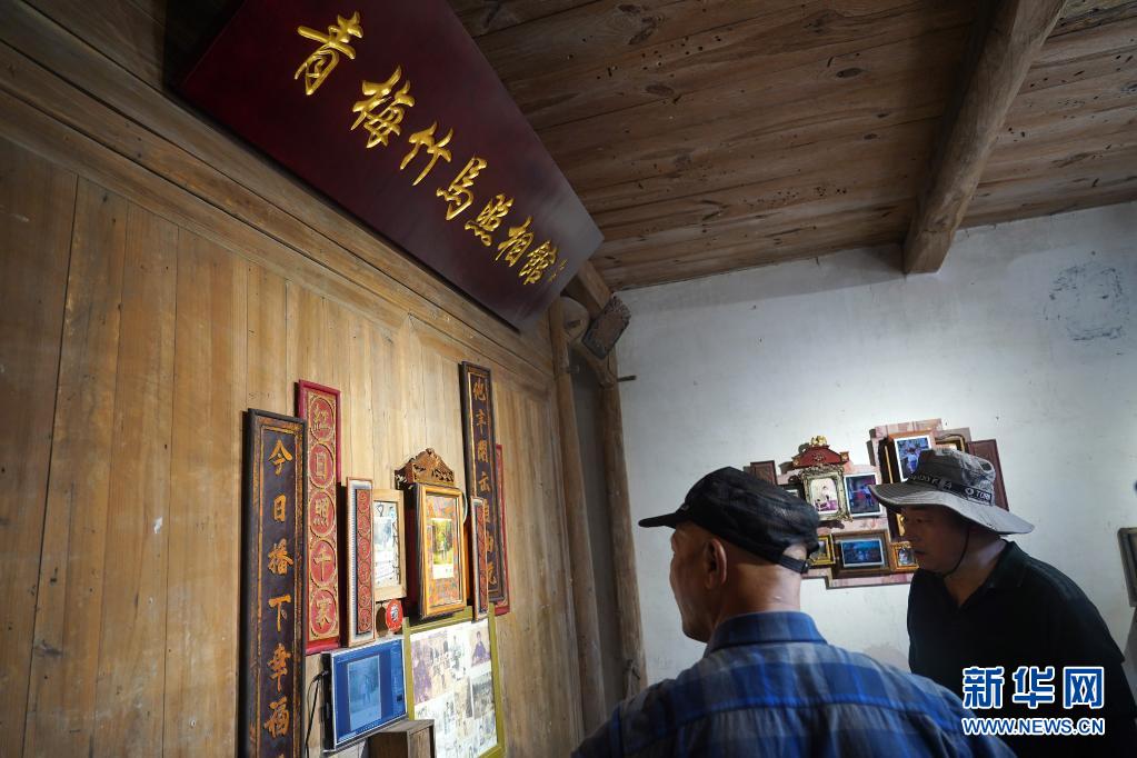 5月1日,參觀者在浮梁縣寒溪村參觀藝術作品《青梅竹馬照相館》。