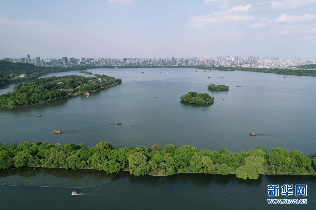 初夏時節,杭州西湖綠意蔥蘢,引人入勝。