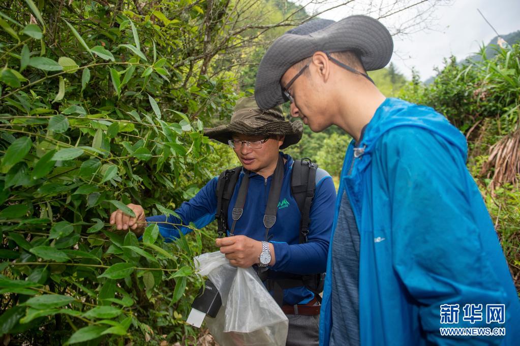 5月11日,中國計量大學植物生態學教授孫俊威(左)與參與此次調查的助理劉煜坤一起采集植物標本。