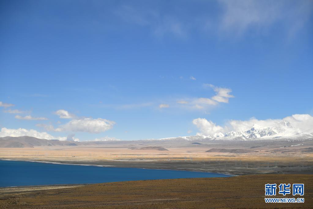 這是希夏邦馬峰腳下的佩枯錯(5月14日攝)。