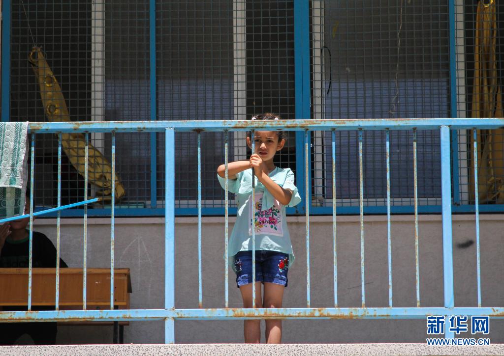 5月19日,受空襲影響而逃離家園的7歲巴勒斯坦兒童拉米·蘇丹在加沙城的一所學校臨時棲身。