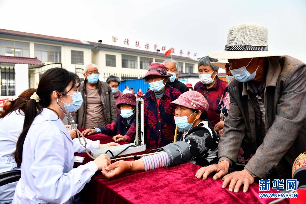 5月21日,在棗莊市臺兒莊區(qū)澗頭集鎮(zhèn)褚提樓村,“學(xué)黨史惠民”醫(yī)療小分隊為群眾開展送醫(yī)、送藥服務(wù)。