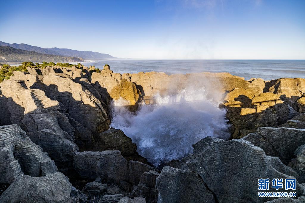 這是5月25日在新西蘭普納凱基拍攝的薄餅巖。