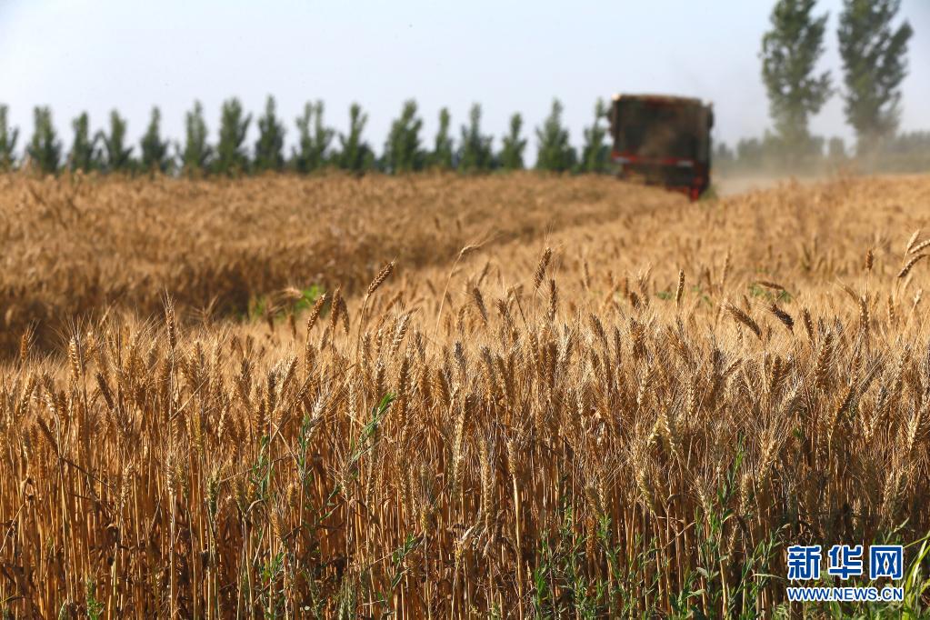 6月20日,收割機(jī)在山東省青島市即墨區(qū)段泊嵐鎮(zhèn)姜家坡村的麥田內(nèi)作業(yè)。