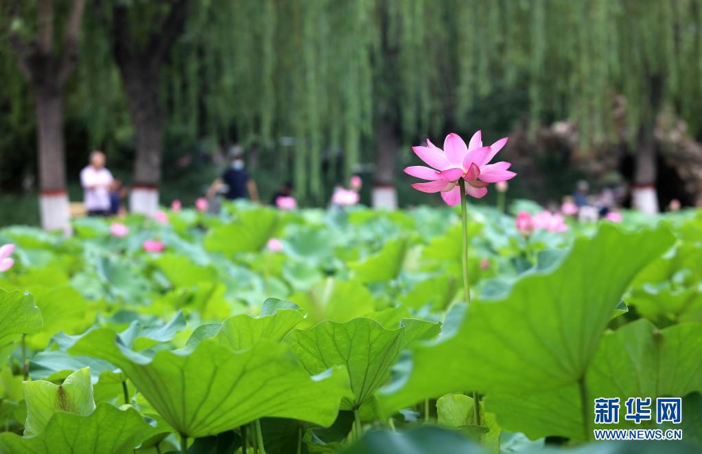 6月21日,市民在河北省石家莊市平安公園欣賞荷花。