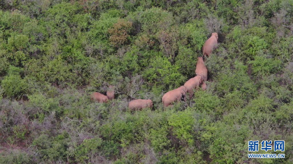 6月22日在云南省玉溪市峨山縣大龍潭鄉附近拍攝的象群(無人機視頻截圖)。