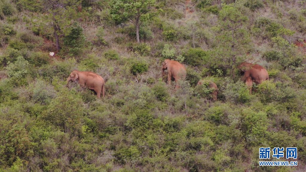 6月22日在云南省玉溪市峨山縣大龍潭鄉附近拍攝的象群(無人機視頻截圖)。