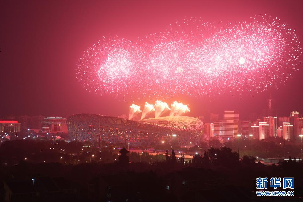 6月28日晚,慶祝中國共產黨成立100周年文藝演出《偉大征程》在國家體育場盛大舉行。這是焰火盛放在國家體育場上空。新華社記者 鞠煥宗 攝