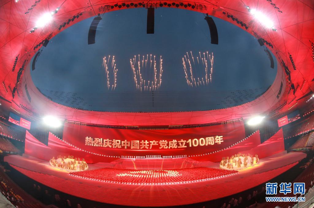 6月28日晚,慶祝中國(guó)共產(chǎn)黨成立100周年文藝演出《偉大征程》在北京國(guó)家體育場(chǎng)盛大舉行。這是盛典儀式。