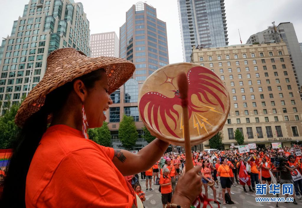 當天是加拿大日,上千名抗議者在溫哥華集會,悼念加拿大在強制“同化”原住民過程中遭到殘害的兒童,呼吁取消加拿大日的慶祝活動。