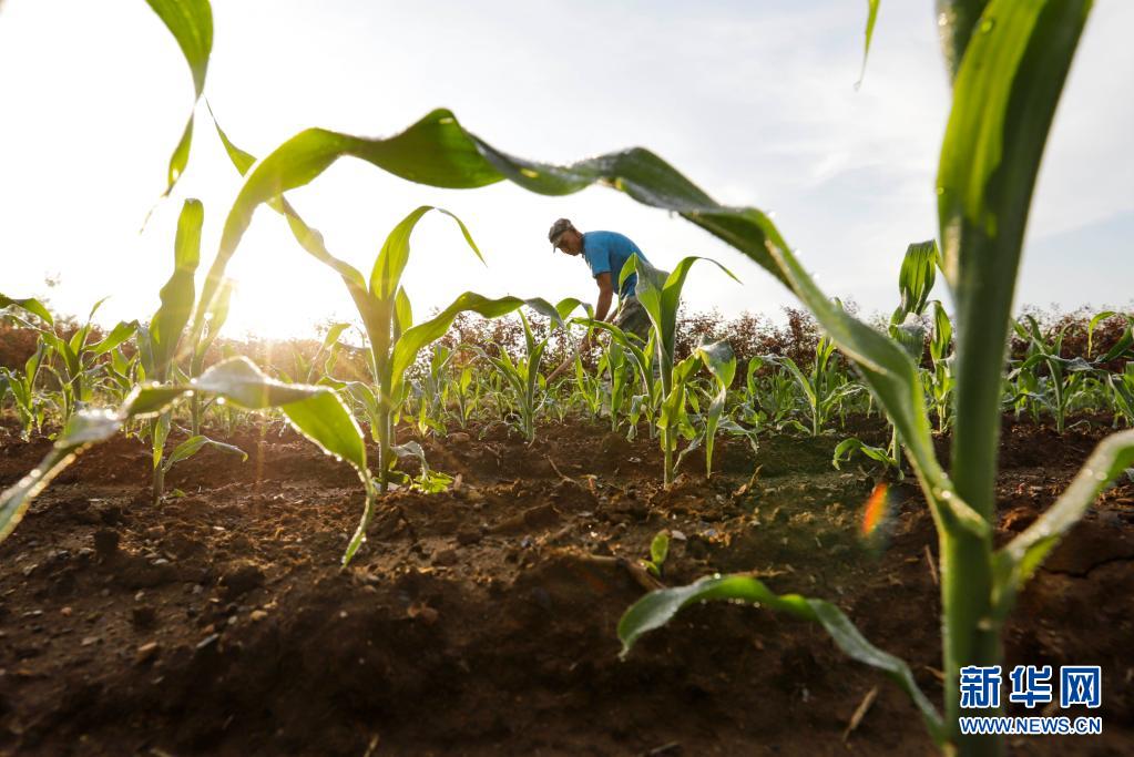 7月5日,河北唐山遵化市新店子鎮(zhèn)東葦?shù)甏宓霓r(nóng)民在玉米地里勞作。