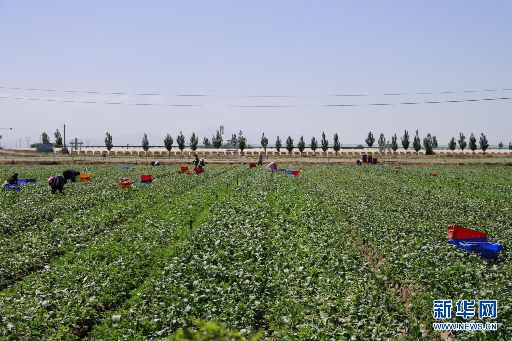 7月4日,在甘肅省張掖市甘州區烏江鎮供港蔬菜基地,當地群眾在采摘蔬菜。