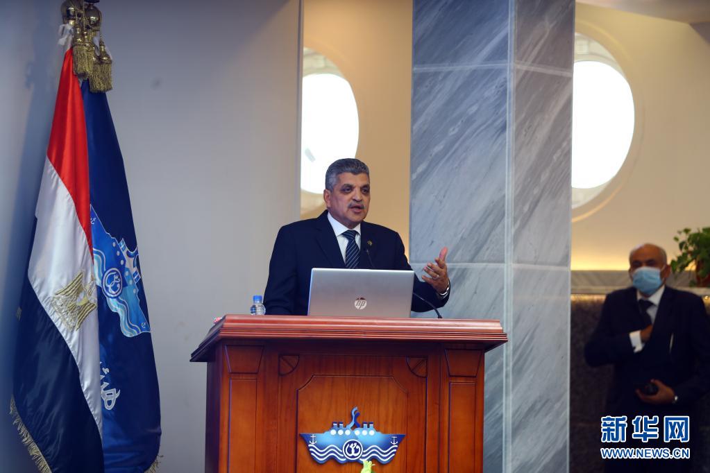 7月7日,埃及蘇伊士運河管理局主席烏薩馬·拉比耶在伊斯梅利亞省召開新聞發布會。