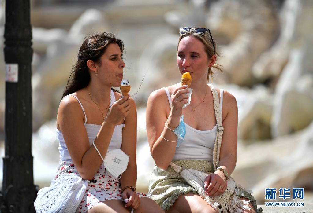 7月11日,兩名女子在意大利羅馬吃冰淇淋消暑。