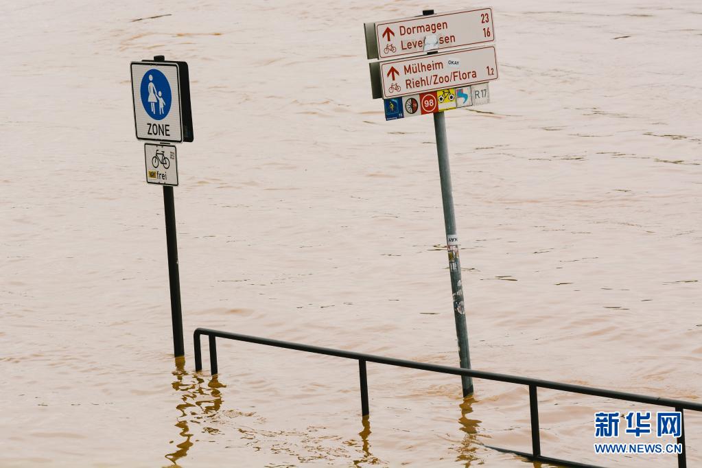這是7月15日在德國(guó)西部城市科隆拍攝的水位上漲的萊茵河。
