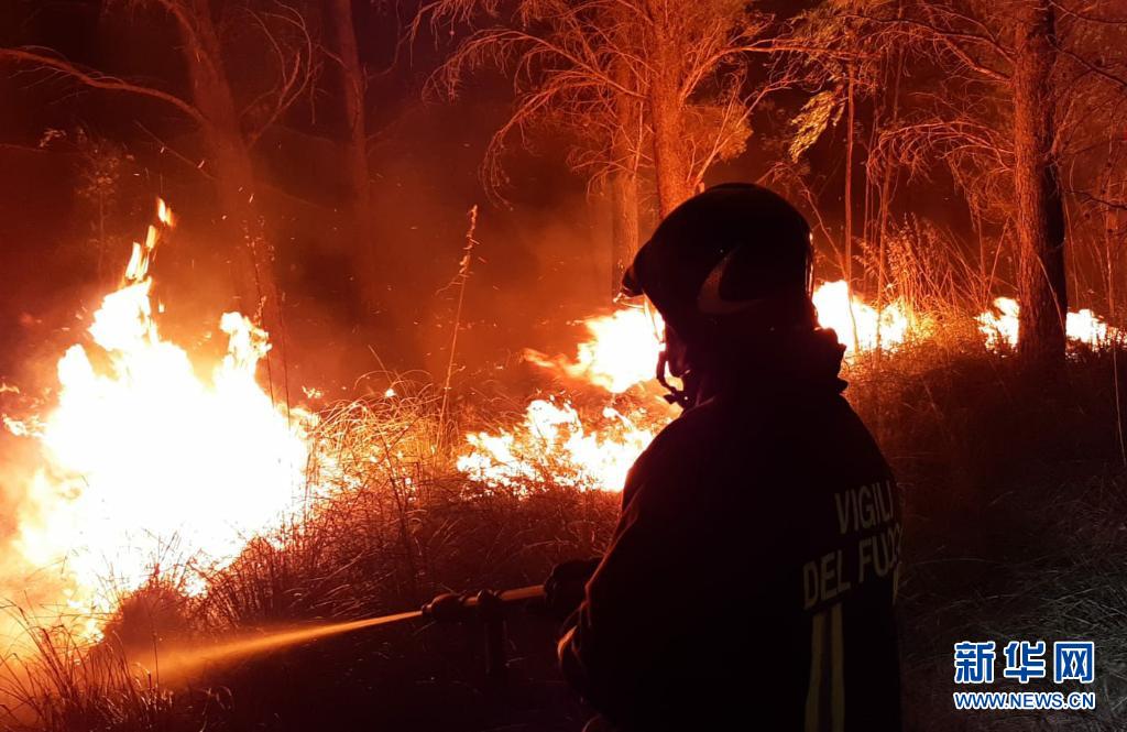7月26日,消防員在意大利撒丁島參與滅火作業(yè)(手機照片)。