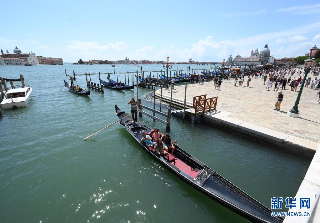 8月3日,游客乘坐“貢多拉”船游覽意大利威尼斯。