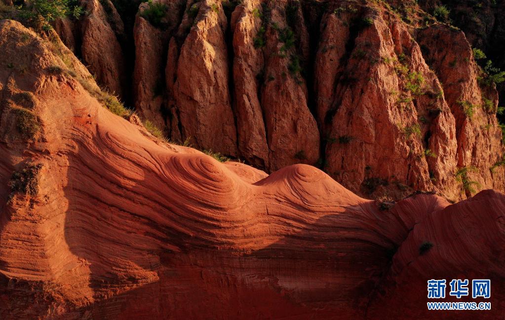 陜西省靖邊縣龍洲鎮波浪谷丹霞景區地處陜北黃土高原,峽谷四面環山,線谷、巷谷、絕壁等構成了特有的波浪形砂巖地貌,景觀獨特。