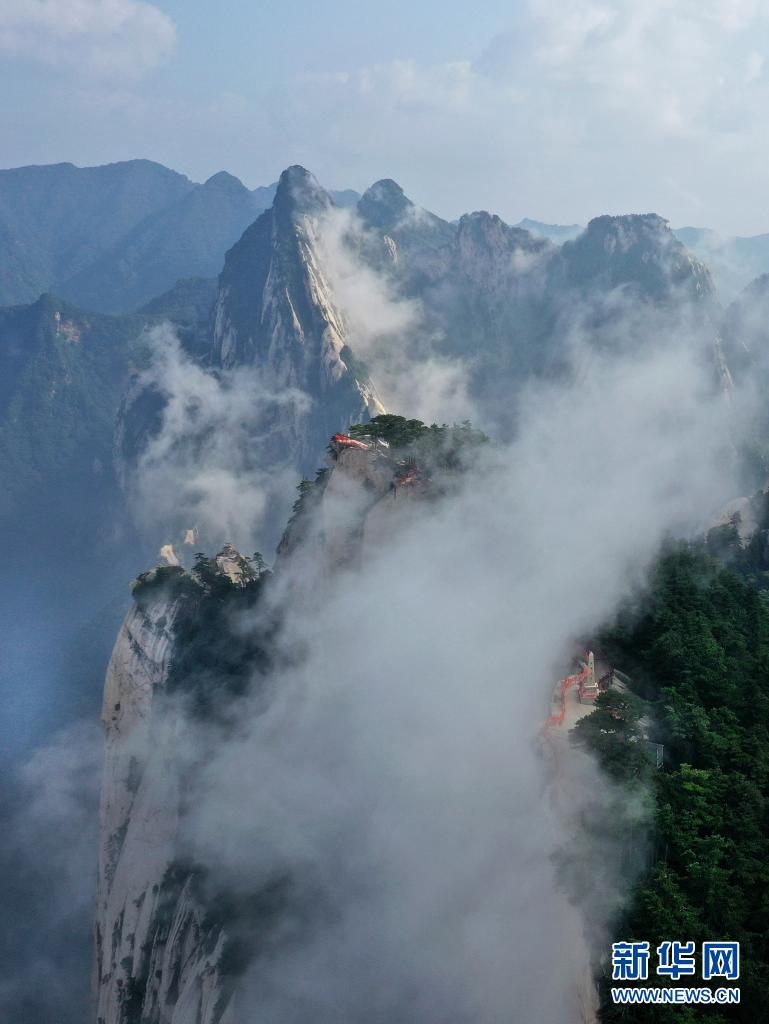 8月14日,云霧中的西岳華山風光(無人機照片)。